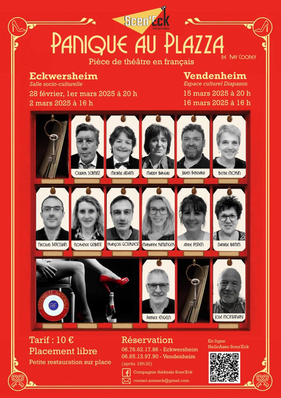 La Compagnie Théâtrale Scen’eck monte une fois de plus sur scène avec générosité et engagement ! Cette année encore, elle a choisi de soutenir notre association en reversant une aide financière issue des représentations de la pièce « Panique au Plazza ».